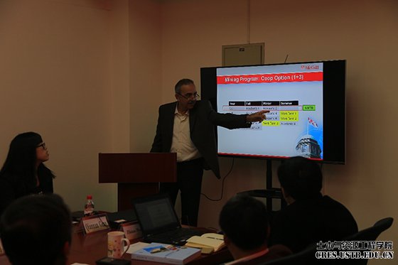 随后,Hani Mitri教授对“1+3”项目的相关内容做了具体的介绍。在座领导及老师与Hani Mitri教授对“1+3”项目实施的一些细节进行讨论和交流。国际处副处长李贝老师、副院长宋卫东等人,从教学实际以及培养目标出发,建议采取“2+2”模式,即让学生有充分的时间准备到麦吉尔大学进行交换学习以及个人专业兴趣的培养。Hani Mitri教授表示,由于麦吉尔大学此前从未与外校签署过“2+2”项目,需要跟学校进一步协商请示。此外,我院相关专业系主任还对两校课程设置进行了比对,以确保可以良好对接。
