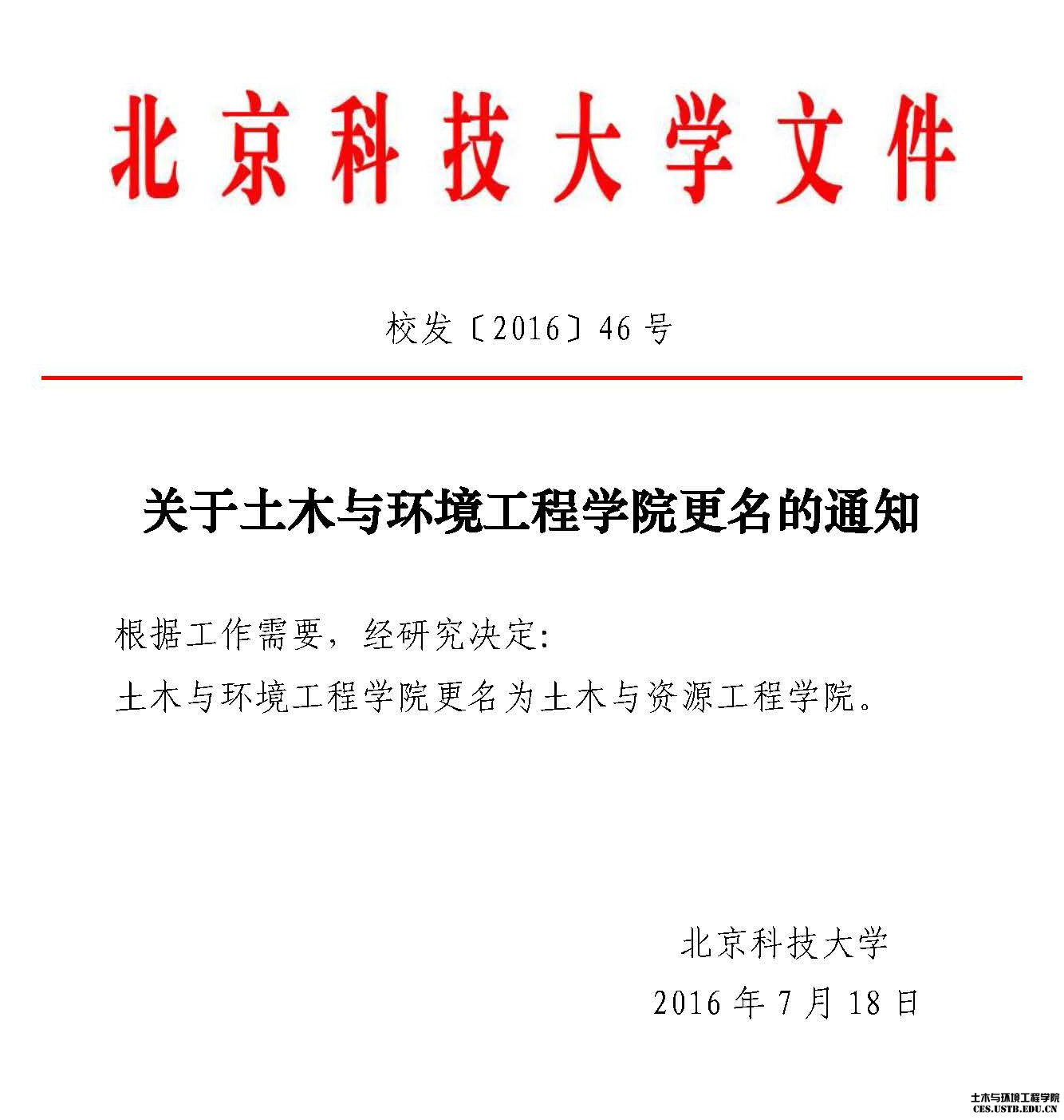 校发〔2016〕46 号:关于土木与环境工程学院更名的通知