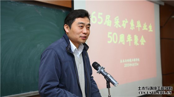 金龙哲书记向前辈们致以热烈的欢迎。胡乃联副院长为校友们详细介绍了学院绵长的发展史和生机勃勃的现状。他表示,虽然有些专业已经不再隶属于土木与环境工程学院,但当年的采矿、选矿、矿机至今仍在全国名列前茅,并且在科研、教学等方面都继承着老一辈采矿人坚持不懈、积极向上的优良传统。