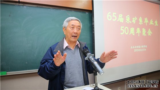 蔡美峰院士作为采矿系65届的学弟,热烈欢迎学长学姐们回母校聚会。他说,能再次见到如此多熟悉的面孔实属不易,如今的采矿系正在蓬勃发展,未来也必将前途无量。
