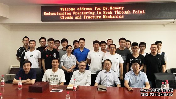2017年6月17日下午,国际岩石力学知名专家、美国亚利桑那大学采矿与地质系主任John Kemeny教授应必赢nn699net官网岩土与灾害控制研究室的邀请,在必赢nn699net官网214会议室进行了专题为“Understanding Fracturing in Rock through Point Clouds and Fracture Mechanics”的学术讲座。梯队吴顺川教授、潘旦光教授、刘洋教授和金爱兵教授出席此次讲座,相关专业研究生、本科生积极参加了本次学术交流活动。