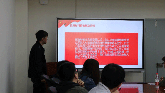 各学生党支书依次上台进行述职,从自身职责履行情况、支部工作进展、党员发展情况、党建成果梳理、工作不足以及后期工作展望等方面对其所在党支部的相关情况进行了汇报。