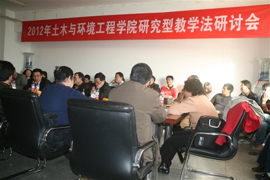 2012年11月16日“土木与环境工程学院研究型教学法研讨会”在土木环境楼314召开,学校教务处副处长教授和教学督导组组长罗圣国教授、土木与环境工程学院党委书记教授、副院长教授、副院长吴豪伟副教授、院教学督导组专家胡永平教授、袁怀雨教授以及各系领导、教师参加了本次会议。
