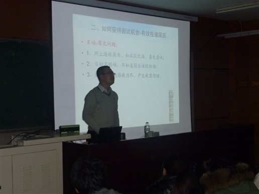 由于今年就业形势的严峻,经过调研发现毕业生中普遍存在着就业技巧不足的问题,因此我院研会策划组织了这场就业技巧的讲座。
