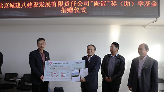 2018年11月16日下午,北京城建八建设发展有限责任公司“励能”奖(助)学基金捐赠仪式在土木楼214会议室举行。北京城建八建设发展有限责任公司党委书记、董事长李金海,党委副书记孙茜,总工程师刘卫东,副总工程师付伟杰,科技中心主任兼项目经理张志伟,项目经理贺志伟、翟春升、徐立岩、刘冀;必赢nn699net官网校友会、基金会办公室副主任杨志国,必赢nn699net官网院长金龙哲,党委书记纪洪广,学院领导班子成员及土木系教师代表出席了本次捐赠仪式。捐赠仪式由学院党委书记纪洪广主持。