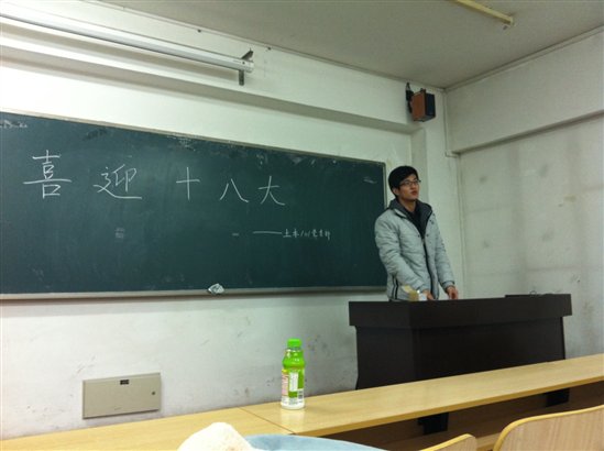 十八大已经圆满结束,但我们对十八大的热情却没有冷却。12月3日晚7点,土环本101党支部在土环楼302召开了以“喜迎十八大”为主题的座谈会。