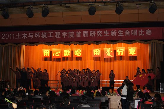 2011年12月2日晚7点,必赢nn699net官网土木与环境工程学院纪念“一二·九”系列活动之“用心歌唱,用爱分享”2011年首届研究生新生合唱比赛在教职工礼堂如期开幕。出席此次晚会的嘉宾与评委有校研究生工作部副部长宗燕斌老师、校团委副书记孙长林老师、校团委副书记王郦老师、材料学院陈凯老师、机械学院王斌老师、东凌经管学院秦艺芳老师、土环学院负责人老师、分团委书记姜琳婧老师、研工组长张毅老师、校学生合唱团团长米勒同学,以及各年级的研究生辅导员们。
