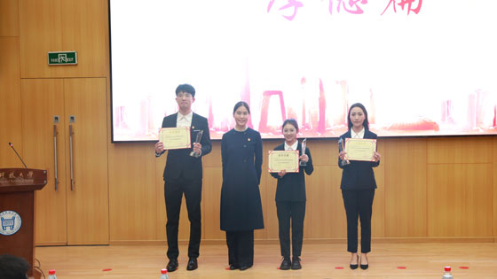 金爱兵为“十佳班长”获得者——王宗贤、“青年服务国家”首都大中专学生暑期社会实践优秀团队——“长青”支教团、87级校友基金优秀学生干部——张凌竹颁发特别荣誉奖,表彰他们勤学修德、青春励志、砥砺奋进的时代担当,勉励他们锤炼品德修为,不负时代所托。张凌竹同学作为代表发言,展现了一个敬业乐业、肩担责任的的土资青年的情怀与担当。