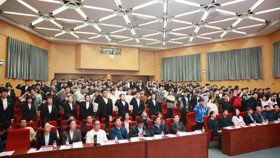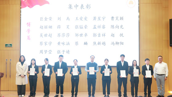 苗胜军为校长奖章获得者——史凌玥、温震江、十佳学术之星——陈威、全员保研宿舍——7斋547宿舍颁发特别荣誉奖,勉励他们扎根学术、潜心问道,成就学术之大师、强国之巨匠。7斋547宿舍成员代表罗梦菲同学分享了寝室四人互帮互助,最终集体成功保研的点滴经历。