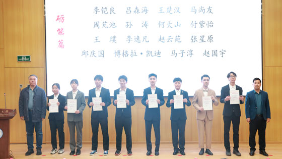 在“砺能篇”,于宝库、黄国忠为在寒、暑期社会实践活动中涌现的先进个人和集体、优秀志愿者、文体比赛获奖团队或个人等代表颁发证书,表彰他们实践求真知、苦练真本领,积淀求卓越的精神。