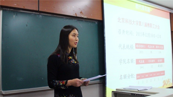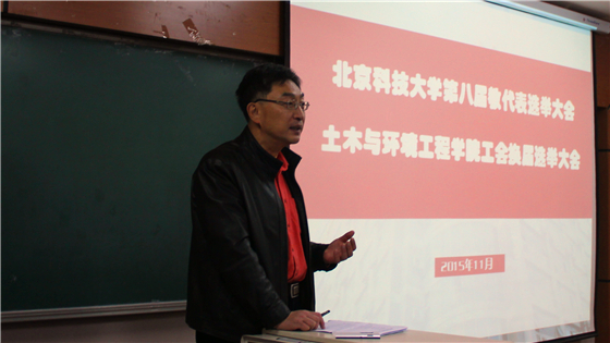 大会首先进行了必赢nn699net官网第八届教代会代表暨土木与环境工程学院分工会委员的选举,选举工作由学院行政副院长耿倩男主持。她首先传达了我校第八届教职工代表大会暨第十六届工会会员代表大会相关文件精神,介绍了学院教职工代表、工会委员的选举情况,并对各系所提名候选人进行了简要介绍,随后按照相关要求组织教代会代表和工会委员的选举工作。