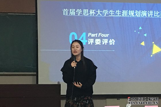 比赛开始前由邓波老师为该场活动致辞,邓老师首先向参赛同学表示了高度的赞赏,并向同学们强调了在大学期间做好自己生涯规划的重要性,使同学们进一步地意识到提前做好规划对自己的未来意义非凡。在比赛中,每位选手都结合自己事先准备好的PPT对自己的生涯规划或学习计划做出了相应的讲解,在三分钟的短暂时间内向在场的所有人展示了自己心中的梦想和自己要努力的决心。