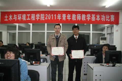 土木与环境工程学院2011年青年教师教学基本功比赛经过系所预赛和学院大赛两个阶段,于3月29日圆满结束,来自五个系的9名青年教师参加了学院大赛。此次比赛由学院教学委员会和学院工会联合组织,校工会和校教务处监督指导。