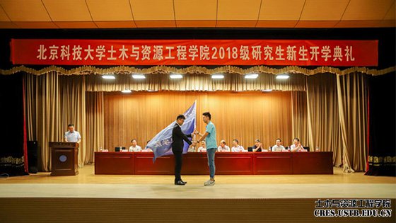 学院研究生会主席侯庆云代表老生发言,他以自己过去一年的研究生经历和感悟与新生共勉,以梦为马,不负韶华。随后侯庆云将院旗传递到新生代表2018级安全专业硕士生牛小萌手中,希望新生们传承学院精神,开创新的精彩。牛小萌同学代表全体新生感谢师长的关心,并表示会在未来的学习生活中奋进向上,丰富实践经验,不断超越自我。