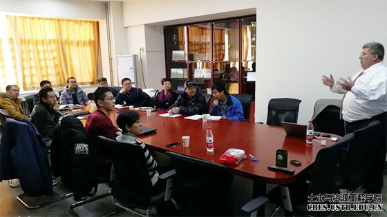 之后,美国Wes Tech公司Jimmy教授介绍了其公司的主要业务范围及国外浓密机的发展现状。他表示,愿意与我校建立紧密的合作伙伴关系以及后期请更多专家来我校做交流等。