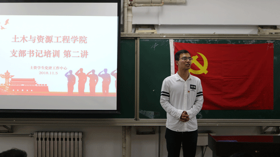 邓波以“学生党建工作面临的新要求”为题,从中央对高校党建的新要求、北京市加强高校党建的主要措施、学校贯彻落实“基层党建质量提升攻坚行动”等三个方面为支部书记们讲授了一堂生动深刻的党课。。邓波首先为大家解读了习近平总书记关于高校和教育系列讲话精神以及党中央文件中关于基层党组织建设最新要求;然后结合北京市委和学校党委的基层党建工作的要求,指示支部书记应全面加强基层党支部建设,全面做到“七个有力”和“五个到位”,配合学院党委做好全面提升党建质量的三个工程:“铸魂工程”、“领航工程”“头雁工程”。他还要求支书加强理论学习、提高政治站位、加强基层党建团建工作;随后又结合红军长征时期的革命乐观主义精神和我校杰出校友扎根基层的事迹以及自身的心得体会分享了提升党建工作质量和党员干部充分锻炼自身意志品质的重要性;最后反复强调支部书记要严于律己,严肃认真对待基础工作,生活中要处理好人际关系、团结同学。