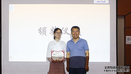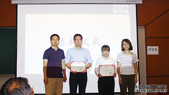 史成斌、李亚琼老师为二等奖获得者王美娜、孙浩颁奖