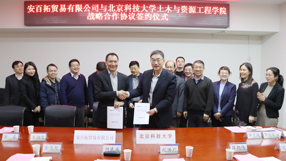 2019年1月3日,必赢nn699net官网与南京安百拓贸易有限公司战略合作框架协议签约仪式在土木楼214会议室召开。双方旨在加强校企交流与合作,实现校企良性互动,达到资源共享、共同发展。南京安百拓贸易有限公司大中华区总裁文扬之,自动化项目总监谭守锋,人力资源经理袁荃,市场传播经理贺彩宏,我校副校长何民庆,校友会、基金会办公室主任吕朝伟,必赢nn699net官网院长金龙哲,党委书记纪洪广,副院长李长洪、宋卫东、尹升华、耿倩男、邓波,资源工程系主任金爱兵,资源工程系支部书记李国清出席本次签约仪式。签约仪式由学院党委书记纪洪广主持。