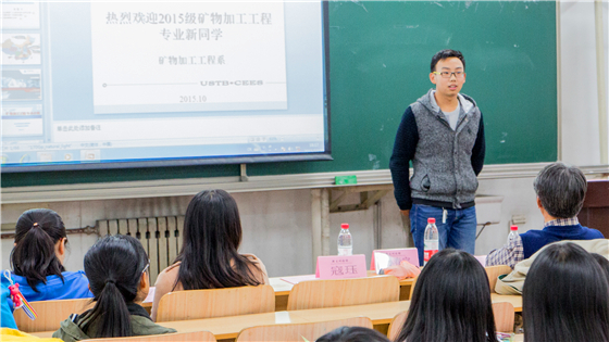 10月30日晚,矿物加工工程系在土环楼301举行了2015新生专业说明会暨新生成长对话课。矿物加工工程系主任孙春宝、书记孙体昌应邀进行专业介绍,系副书记李正要、寇珏,教师代表邹文杰、胡文韬,辅导员田兴华以及矿物加工专业全体新生参加了此次活动。