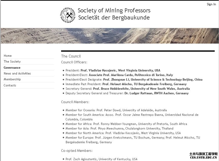 据国际矿业教授学会(Society of Mining Professors - SOMP, www.miningprofs.org)消息,我校土木与环境工程学院李仲学教授于近日在德国弗莱贝格工业大学/弗莱堡矿业大学(TU Bergakademie Freiberg, TUBF)举行的第26届国际矿业教授学会年会上,经学会理事会(The SOMP Council)提名、由学会大会(The Annual General Meeting)选举为2015-2016年度学会候补主席(President-Elect Designate)。
