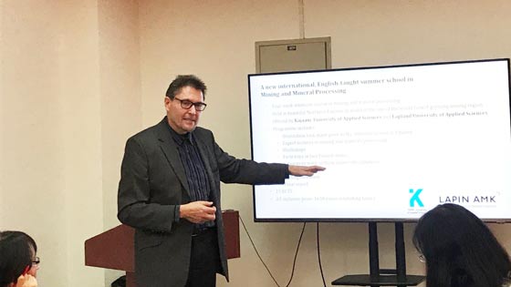卡亚尼应用科技大学和拉普兰应用科技大学拟联合举办2019年矿业学科学生芬兰暑期夏令营,英文授课,为期四周,核心课题为智能采矿技术和矿业的安全生产与环境安全,包括专家讲座、研讨会、实验室实习和社会项目考察等内容。双方就通过矿业工程“暑期夏令营班”计划及方案,拓展学生视野及专业认知、密切双方合作交流达成了初步意向,争取促成“暑期夏令营班”成功举办。