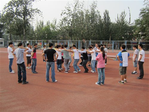 开学伊始,为了使来自五湖四海的研究生新生有相互认识与了解的机会,同时初步进行班级团队建设。2011年9月8日至9日,土木与环境工程学院8个硕11新生班集体轮流在操场上举行了趣味十足的班级素质拓展班会。班会由学院硕11级辅导员张毅老师策划并担任主持。