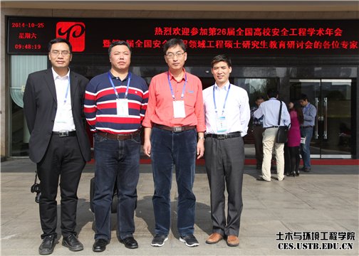10月24日-26日,我校土木与环境工程学院书记金龙哲、安全科学与工程系主任张英华、系支部书记黄国忠、系副主任黄志安一行4人参加了在湖南湘潭举办的第26届全国高校安全工程专业学术年会暨第8届全国安全工程领域工程硕士研究生教育研讨会,并作分组报告。本届会议由湖南科技大学承办,中南大学、湖南工学院、南华大学和湖南农业大学共同协办。来自国家安全生产监督管理总局、清华大学、中南大学、中国矿业大学、必赢nn699net官网、东北大学、重庆大学、福州大学等70余家高校及相关科研院所共280余人参加了本届年会。