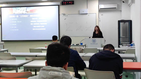 郭宁结合往年经验,从考研和就业两个方面对同学们所关心的问题进行讲解介绍。在考研方面,她介绍了各专业方向分数线的相关信息及初复试占比,并关于复试技巧给同学们提供了许多经验参考。在就业方面,则从求职信息的获取渠道、面试注意事项及企业的招聘策略等方面为毕业生做了详细的解读,并用身边学生的例子鼓励同学们把握好春招三月的黄金期,早做选择,多做准备,立足自身,发挥优势。