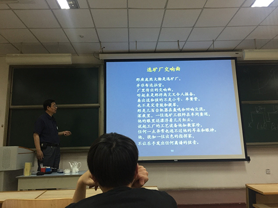 孙传尧院士丰富的工作经历、深厚的理论功底、深入浅出的讲述赢得了在座师生的阵阵掌声,尤其是孙院士对国内各个矿区的矿石性质、选矿厂工艺流程特点更是耳熟能详、如数家珍。