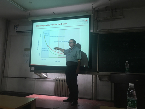 在27日-29日,加拿大英属哥伦比亚大学Bern Klein教授以及中国五矿集团科技管理部副总经理何发钰分别在土木楼301多媒体教室进行了题为“Ore Heterogeneity and Sensor Based Sorting”以及“国家十三五资源发展战略”的学术讲座。我系教师及本科生、研究生共计40余人聆听了本次学术报告。