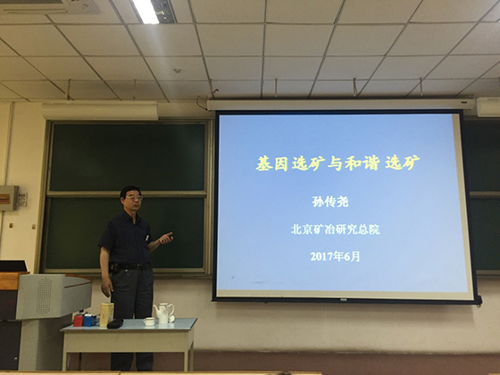 其中,6月26日下午在逸夫楼704多媒体教室孙传尧院士进行了题为“基因选矿与和谐选矿”的学术系列讲座的第一讲。矿物加工工程系教师以及本科生、研究生、博士生参加了此次学术活动。
