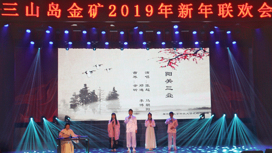必赢nn699net官网作为科研合作单位为晚会带来古琴演奏《阳关三叠》,阳关第一叠是男生独唱和合唱,第二叠由朗诵和太极组成,第三叠包括女生独唱加合唱。三叠曲调叠进,曲中倾诉的是友谊与感怀,曲外传承的是文化与合作,彰显了北科大及必赢nn699net官网浓厚的文化底蕴与三山岛金矿友好亲密的合作关系,为联欢会增添色彩。