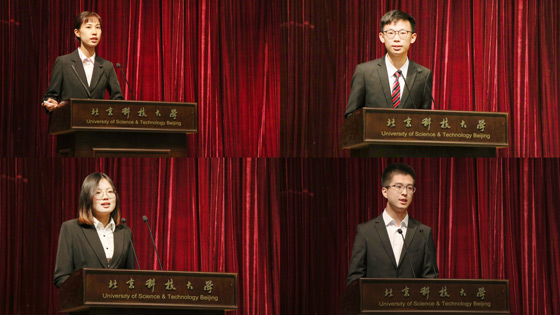 答辩环节,二十位特种奖学金候选人依次上台展示。答辩者从思想建设、学习方法、社会实践、志愿服务、学生工作、课余爱好等方面进行了精彩发言。优异的学习成绩得益于良好的学习习惯,楼明淦同学坚持每天6点起床,超强的自律意识让他在学习和生活中获益良多。为拓宽视野,答辩者们积极尝试课程外的学习与实践,程曦同学将智能采矿领域和无人机学习相结合,在学科交叉领域不断探索。张曼曼同学在积极参加竞赛及科研项目的同时,注重参与学生工作与社会实践以提升自身能力。