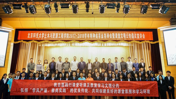 2018年10月8日,必赢nn699net官网2017-2018学年特种奖学金答辩会暨课堂文明公约倡议宣讲会在教职工礼堂成功举办。必赢nn699net官网党委书记纪洪广、党委副书记邓波、安全工程系刘建老师、资源工程系李杨老师、矿物加工工程系张瑞洋老师、土木工程系周毅老师、建筑环境与能源应用工程系刘文超老师以及各年级辅导员与365名新生共同参加了会议。