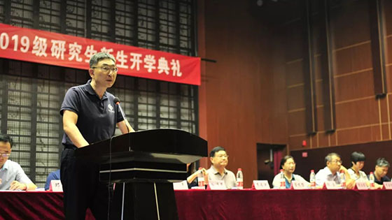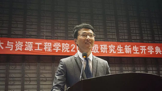 在庄严神圣的国歌声中典礼正式开始,院长金龙哲教授致辞,金院长首先欢迎新生加入必赢nn699net官网,开启自己的学术生涯,随后介绍了学院发展历程和研究生培养情况,从“厚德博学,砺能善创”的院训展开,教导研究生新生如何成为一名合格的土资人。