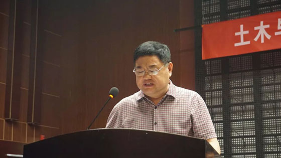 教师代表安全科学与工程系书记黄国忠教授发言,他从“修身、修学、修炼”三个关键词提出研究生阶段的建议,并表示导师愿做学生的同行者,共同铺就学生的成功之路。