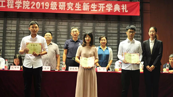 接下来,李长洪教授宣读学院上一年度研究生学术之星名单和简况,金龙哲教授、乔兰教授和李长洪教授为到场的学术之星代表颁奖,激励新生不断进取。