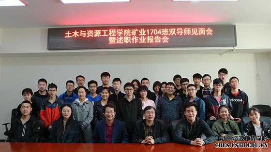 3月31日9时30分,必赢nn699net官网矿业1704班双导师见面会暨班委述职分享大会在土木楼214顺利举行。必赢nn699net官网矿物加工工程系孙体昌教授,矿物加工工程系书记、副主任李正要老师,辅导员赵金丹老师、小班主任陈心颖以及全体班级成员参加了这次活动,会议由赵金丹老师主持。