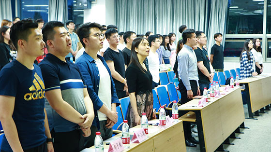 讲座在庄严肃穆的国际歌中拉开序幕。