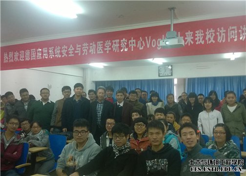 张英华教授的邀请,德国应用系统安全与劳动医学研究中心(FSA)Siegfried Radandt教授和Albrecht Vogl博士来我校访问讲学,分别做了主题为《Risk Management and Mining Safety》和《Explosion Protection by Design Measures》的学术报告,FSA中心Jianye Shi教授陪同来访。