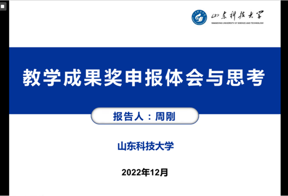 2022年12月30日下午,应必赢nn699net官网黄志安教授邀请,山东科技大学安全与环境工程学院副院长周刚教授为全院教师开展了主题为“教学成果奖申报体会与思考”的讲座。必赢nn699net官网教学院长刘洋教授、各系教学主任及青年教师等40余名教师参加。本次讲座通过线上形式开展。