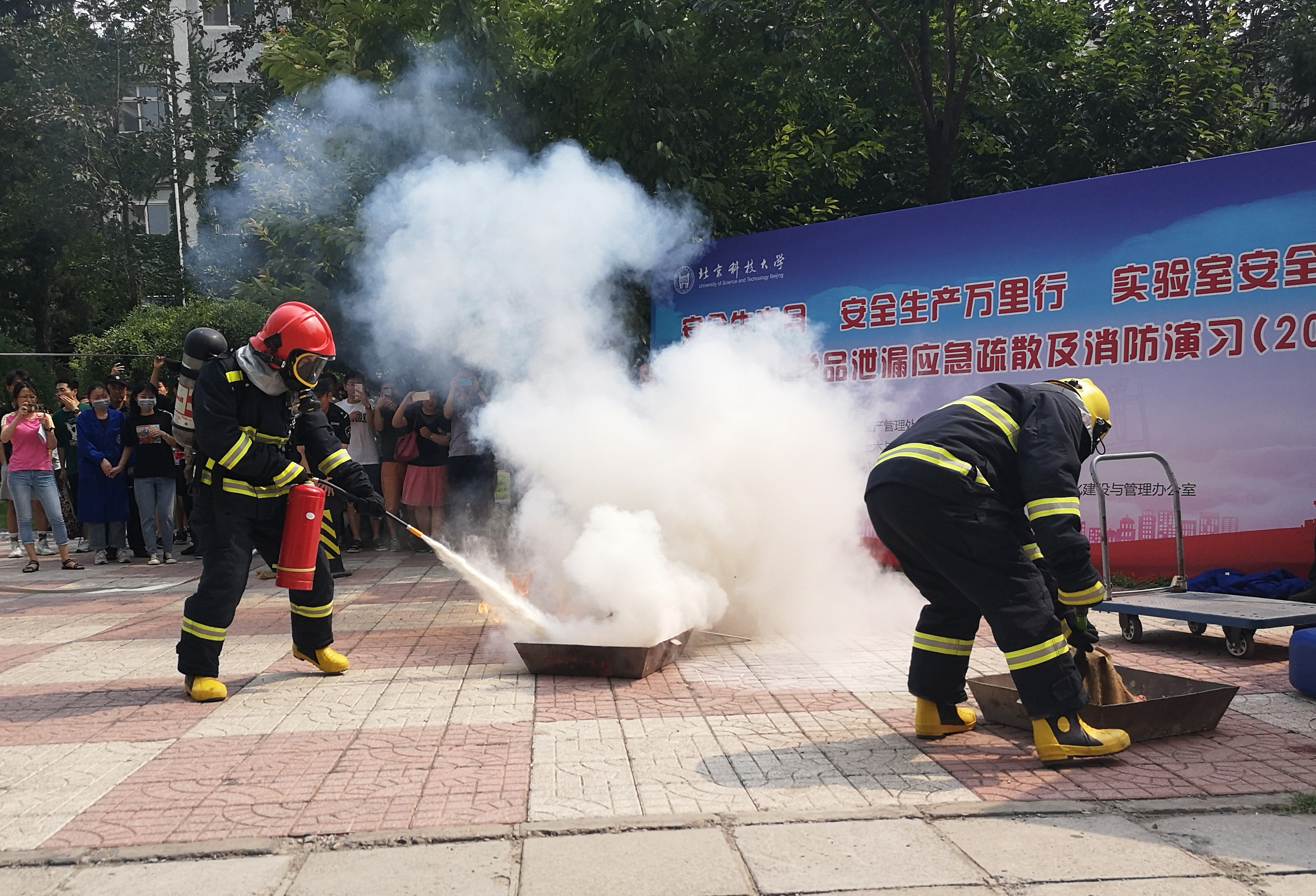 我院承办学校2019年实验室危险化学品泄漏应急疏散及消防演习