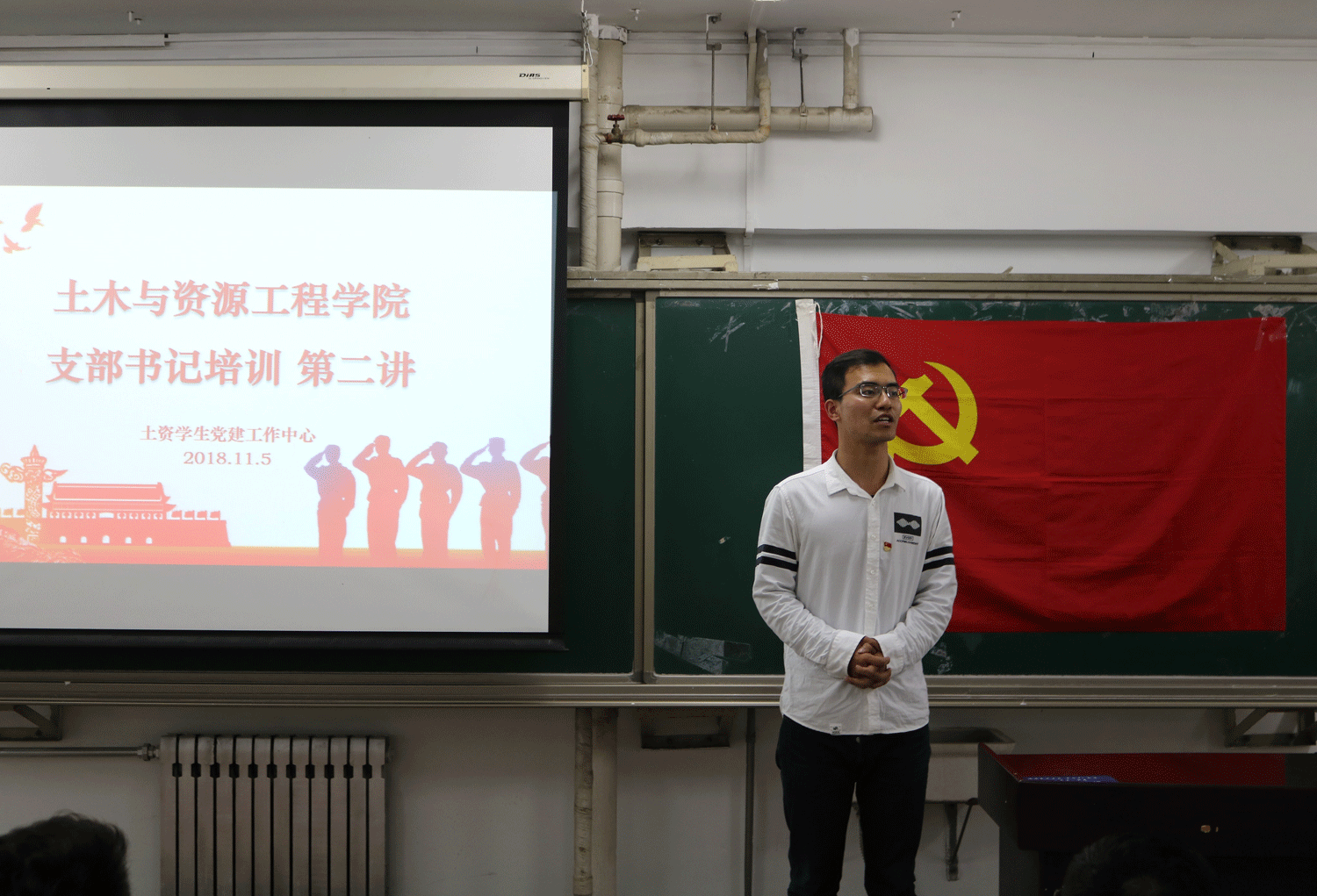 10月29日晚七点半,必赢nn699net官网学生党支部书记培训第一讲于土环楼201举行,出席本次培训的有关心下一代委员会主任王玉印、必赢nn699net官网党委副书记邓波、学生党建专项工作辅导员王可伟、部分辅导员及各学生党支部书记,本次培训会由学生党建工作中心副主任崔柔杰主持。
